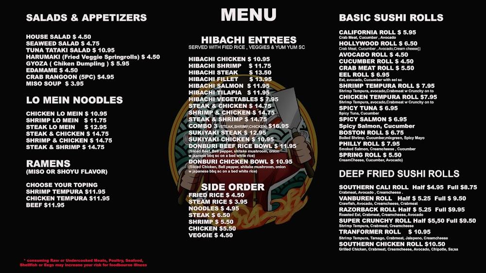 The menu at Saku Saku Hibachi Grill is diverse and enticing. It features a blend of hibachi entrées, sushi rolls, and appetizers, ensuring there's something for everyone. Signature dishes like Hibachi Chicken and the Transformer Roll delight diners.